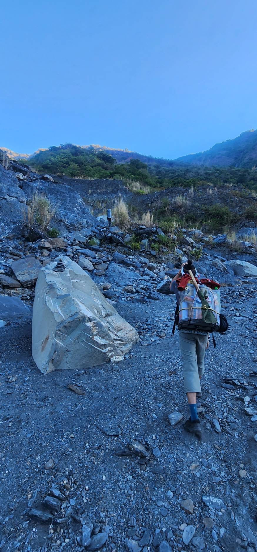 趁著冬季枯水期,我們得以開車到最靠近的山腳下,抬頭看著山頭灑落著剛破曉的陽光,我們深吸一口氣,將友達可撓輕量化太陽能板扛上肩頭,踏上這段單程四小時的登山之旅。